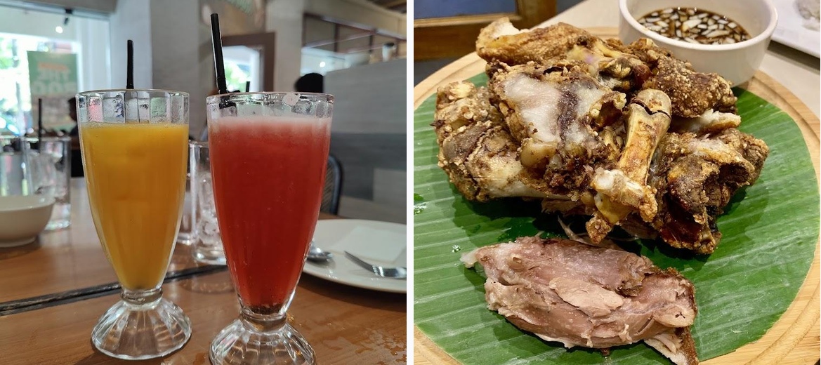 Don't miss the boodle fight, especially the garlic smothered jumbangus and seafood kare-kare. The pancit canton espesyal is also a crowd-pleaser.